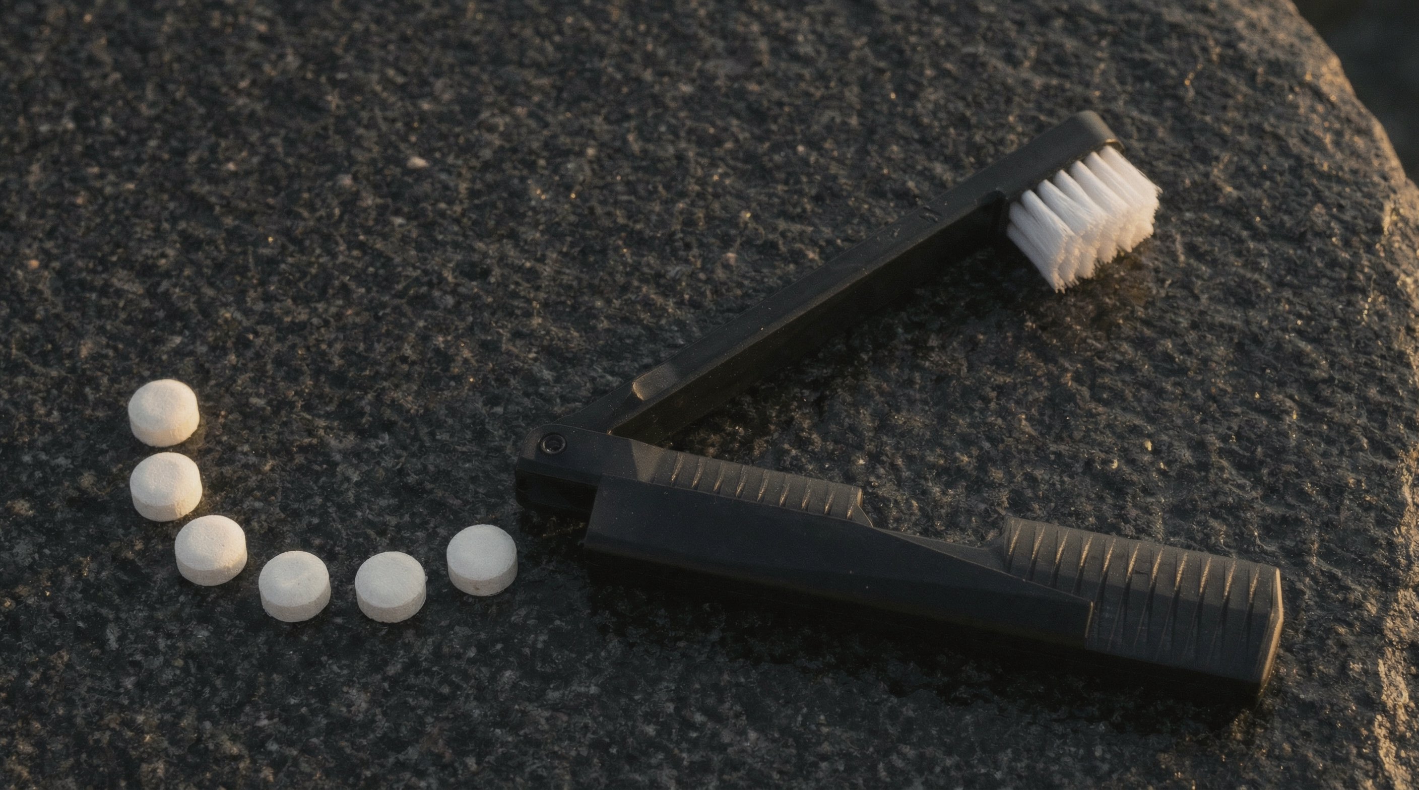Toothpaste tablets replace the tube entirely. Solid, dry, and TSA-compliant. Better for you and the places you visit.